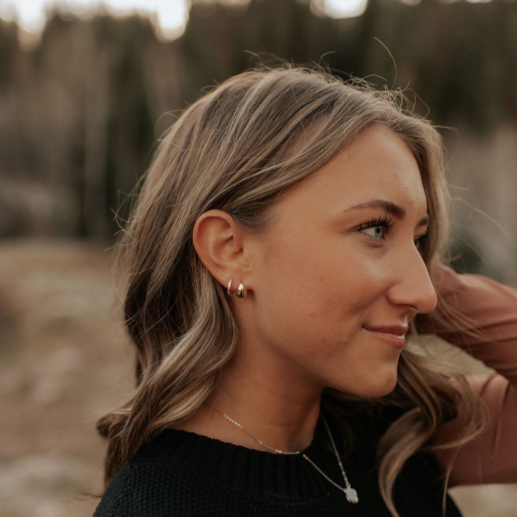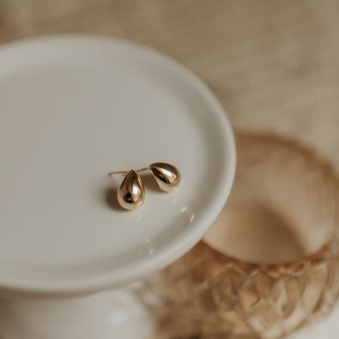 The Gemma Tear Drop Chunky Studs are the perfect pair of high quality live-in earrings. They are made of hypoallergenic gold vermeil, and are wear and tarnish resistant. Perfect for a single lobe piercing or to stack with other earrings.